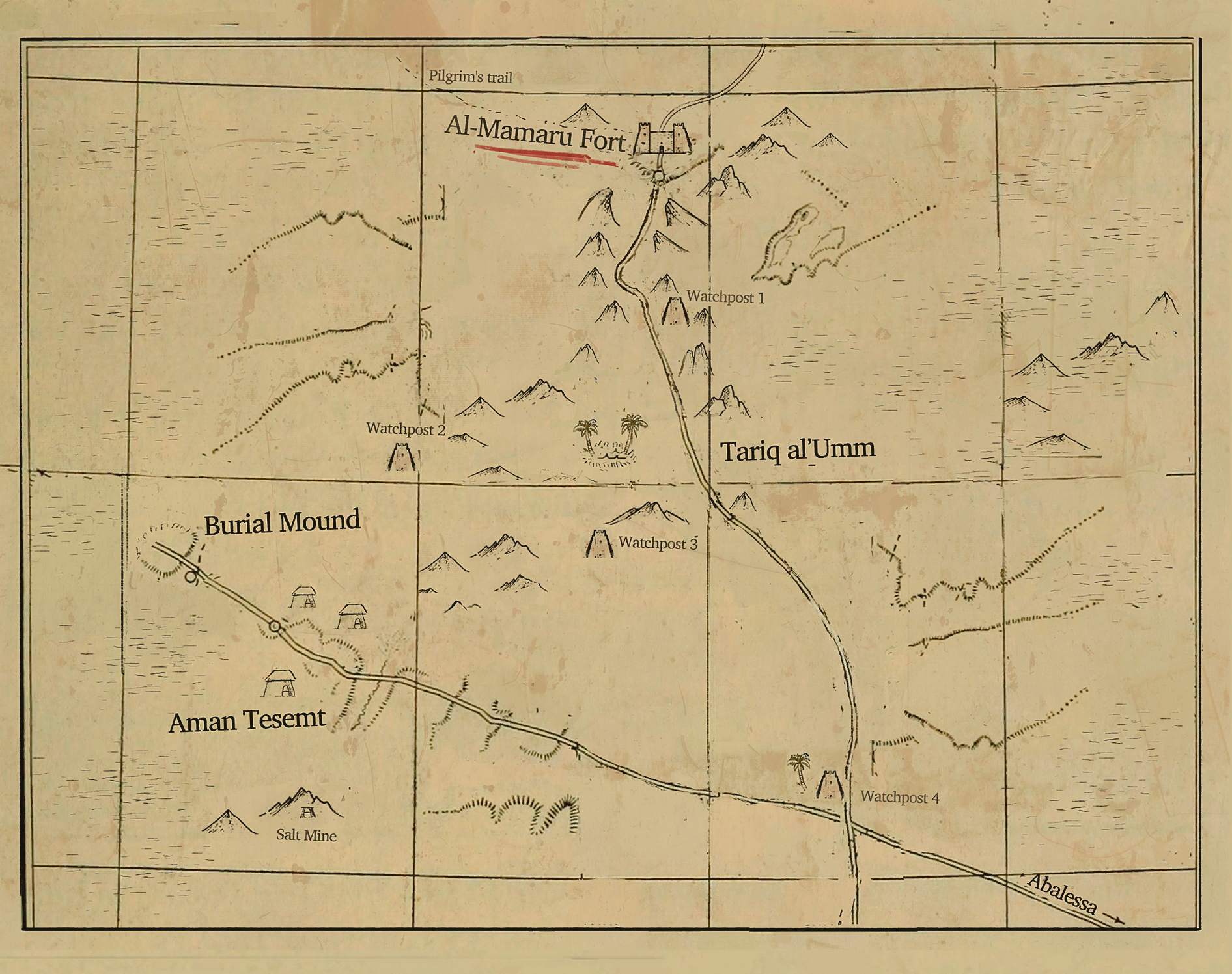 Aman Tesemt was a village in the desert mountains of southern Algeria. It is where Dr. Anton Metzier and Yasmin Chabani took refuge after splitting up from Tasi Trianon, post-visit to the Dark World and began trying to radio for emergency help, eventually reconnecting with an amnesiac Tasi.