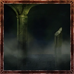 The achievement icon depicts stone pillars in shabby condition, standing above misty and murky waters, resembling the Cistern. However, there is a greenish glow on the pillars above the mist, unlike the Cistern's blue ambient light.