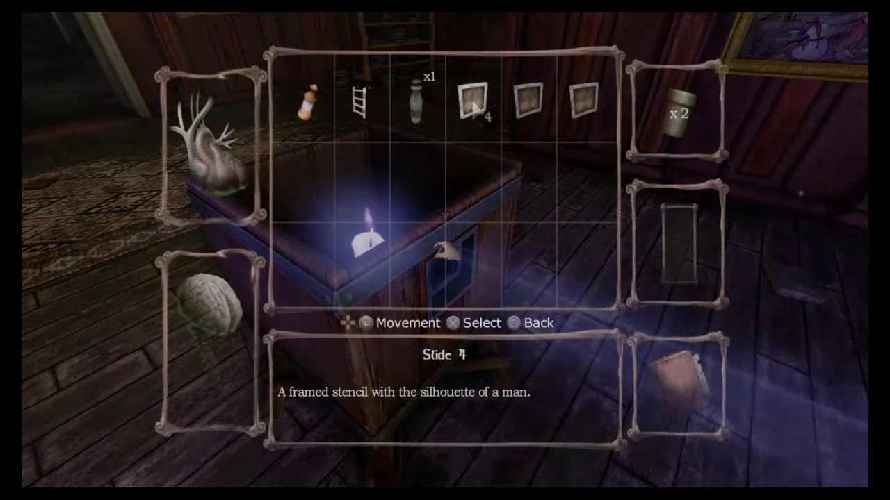 Slides are puzzle item in the DLC Amnesia: Justine. There are four of them, and all are found in the Library.